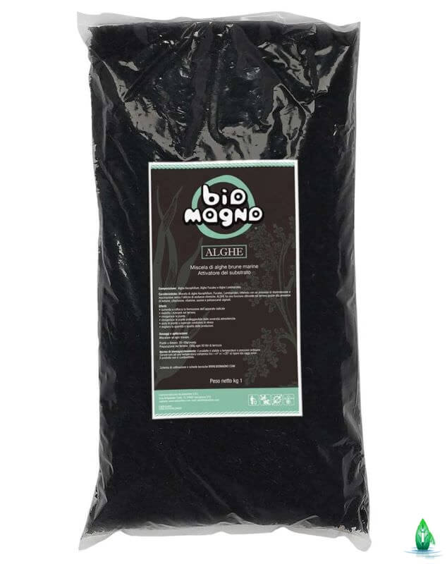 ALGHE BIOMAGNO è un attivatore del substrato di coltivazione composto da una miscela di alghe del tipo Ascophillum, Fucales, Laminariales, ottenuta con un processo di disidratazione e macinazione senza l’utilizzo di sostanze chimiche.
